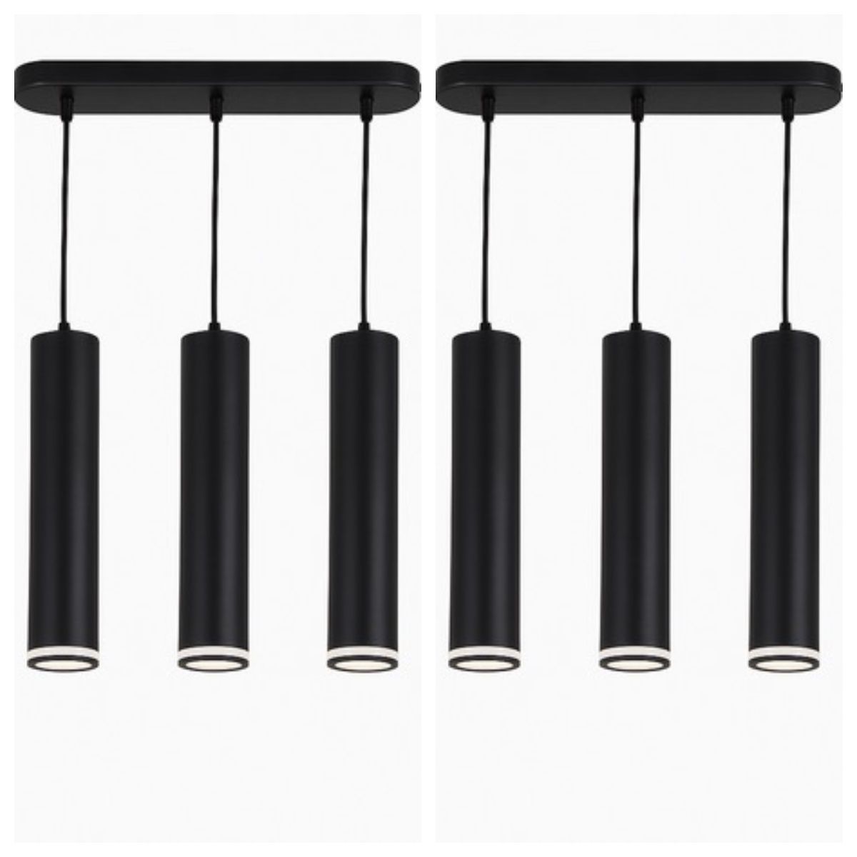 1x 3-Head Modern Black Pendant Ceiling Light - Aluminum Design-2Pack
