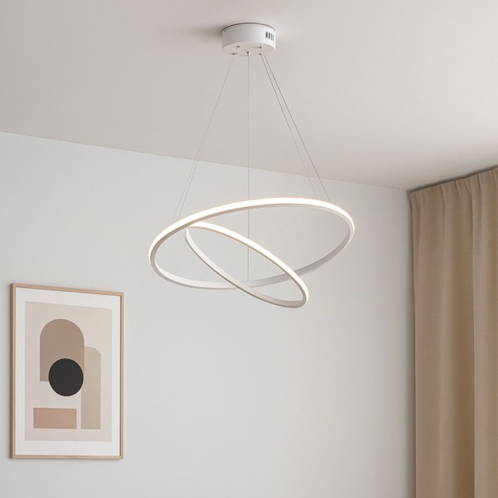 Bring modern elegance to your home with the Ecomlight Twin Ring LED Pendant Light (PL-21147). Featuring a sleek double-ring spiral structure, this fixture delivers a powerful 78W LED output, ideal for living rooms, dining areas, staircases, or foyers.
