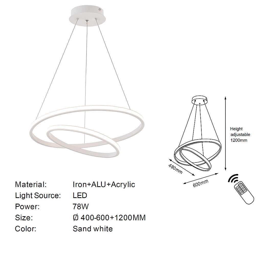 Crafted with iron, aluminum, and acrylic, the pendant is both stylish and durable. The adjustable cable height up to 1200mm offers flexibility for high ceilings, and the included remote control ensures effortless operation.