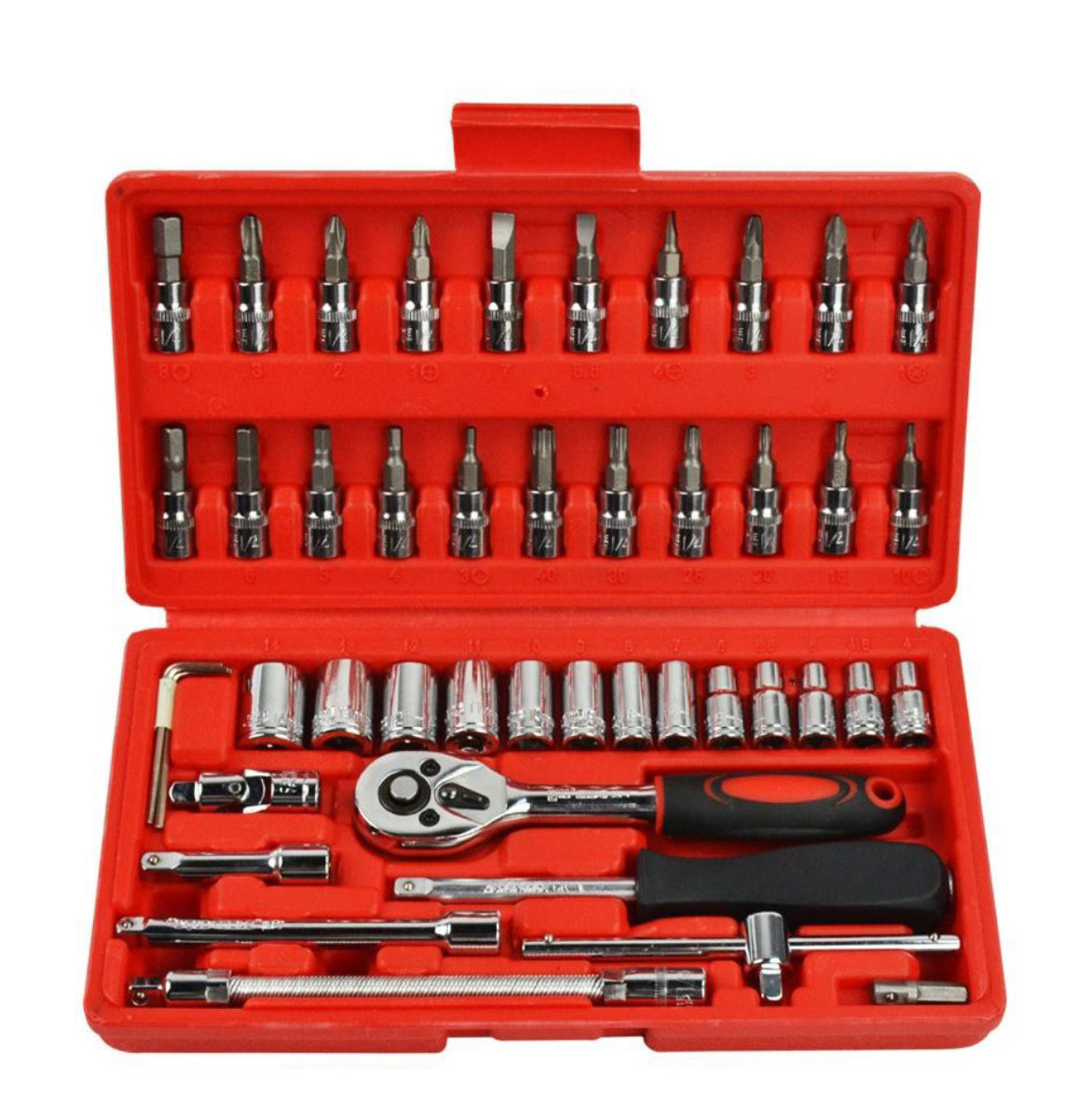 Tools Set 46pcs 1/4-Inch Socket Set Car Vehicle Repair Set