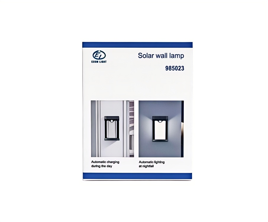 The Ecomlight Solar Wall Light is equipped with a high-efficiency 5V 1.1W monocrystalline solar panel and a built-in 3.7V 1800mAh rechargeable battery. Designed for automatic day charging and night illumination, this outdoor wall lamp features three brightness modes: high (30LM), dim (2.5LM), and constant (13LM). With a cool white color temperature of 6000-6500K, it provides 6-10 hours of lighting after a full 4-6 hour charge.Ideal for patios, garden fences, walkways, or any outdoor space needing reliable solar lighting.